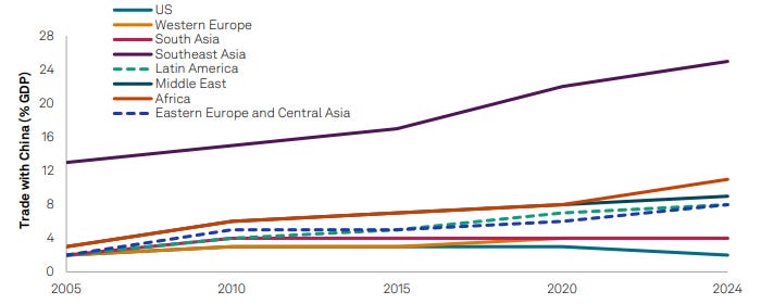 "As they continue to head to the Global South, the result could be a new order of global commerce where South–South trade becomes the new center of gravity and Chinese multinationals emerge as the new key players," notes a new report by S&P Global on the movement of Chinese companies in engaging the Global South following the imposition of U.S. tariffs. The report also notes that despite the hype around Beijing’s inroads, “potential benefits come with substantial execution risks that could challenge the degree and pace of such improvements and impact the income and profitability of Chinese as well as local stakeholders” in the Global South (link).