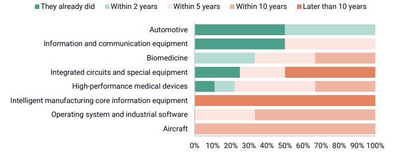 Percentage Share of US Business Survey Respondents By Sector Indicating Chinese Competitors Have Caught Up or Will Catch Up Within a Number of Years