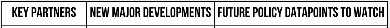 Future Policy Datapoints to Watch, Alongside New Major Developments and Key Partners