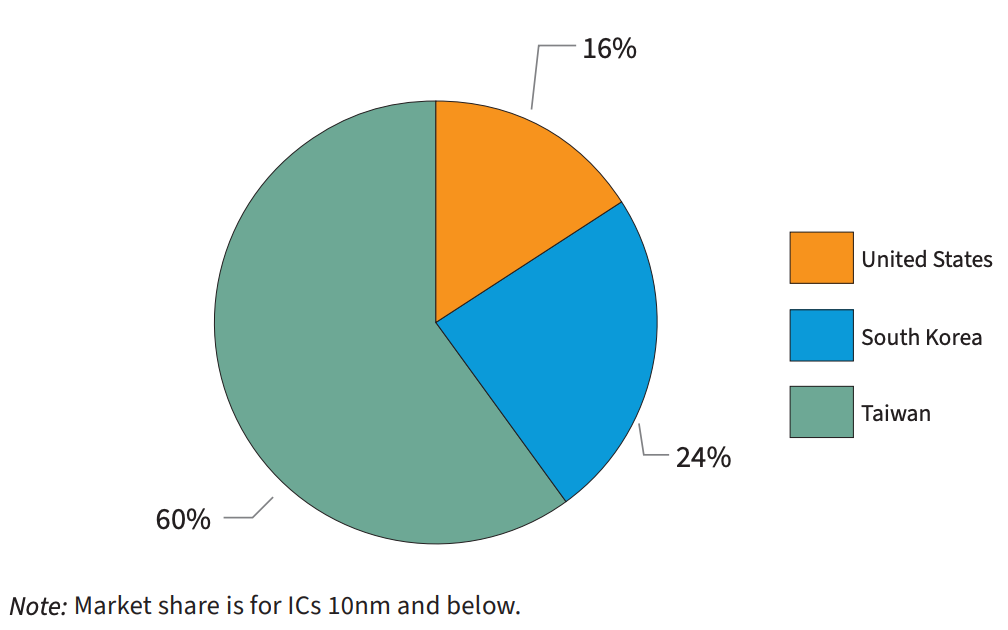 Graphic Depicting Market Shares of Advanced Logic IC Manufacturing Countries, 2023