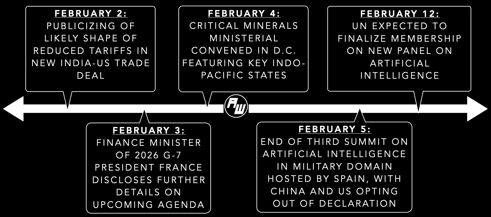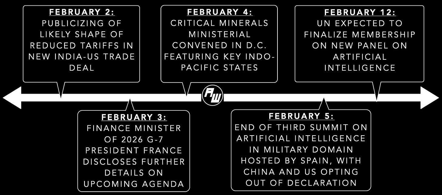 “Diversity only comes from a collective action,” Japan’s state minister for foreign affairs noted in opening remarks at the critical minerals ministerial convened this week in Washington, D.C.1 The ministerial engagement — featuring other key Indo-Pacific delegations as well including four from Southeast Asia in Malaysia, the Philippines, Singapore and Thailand — was just the latest sectoral datapoint revealing how geoeconomic tools of statecraft are being increasingly and more explicitly leveraged by governments for geopolitical ends2. This is occurring as sectoral developments continue to play out both among Indo-Pacific economies as well as across global fora such as the G-7 and United Nations (see snapshot graphic below).