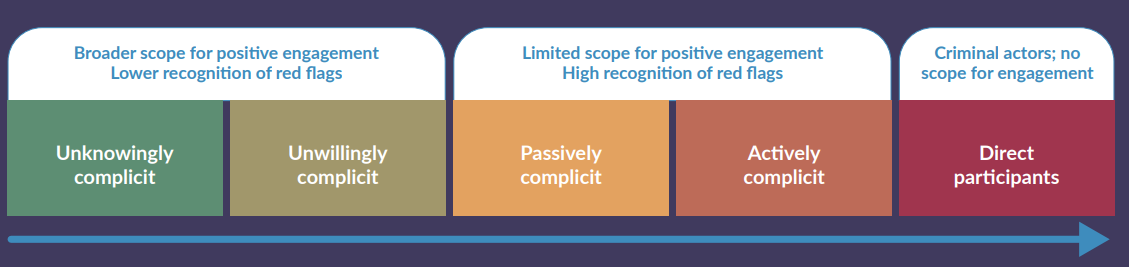 Graphic Illustrating “Spectrum of Complicity” for Entities and Scam Compounds