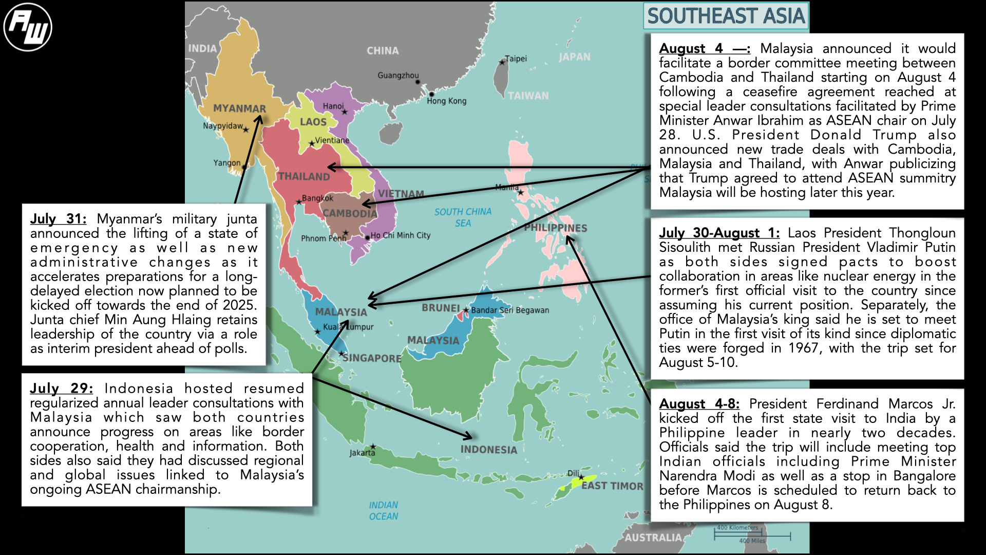 Select Recent Developments in Southeast Asia Amid Cambodia-Thailand Border Row Ceasefire Talks