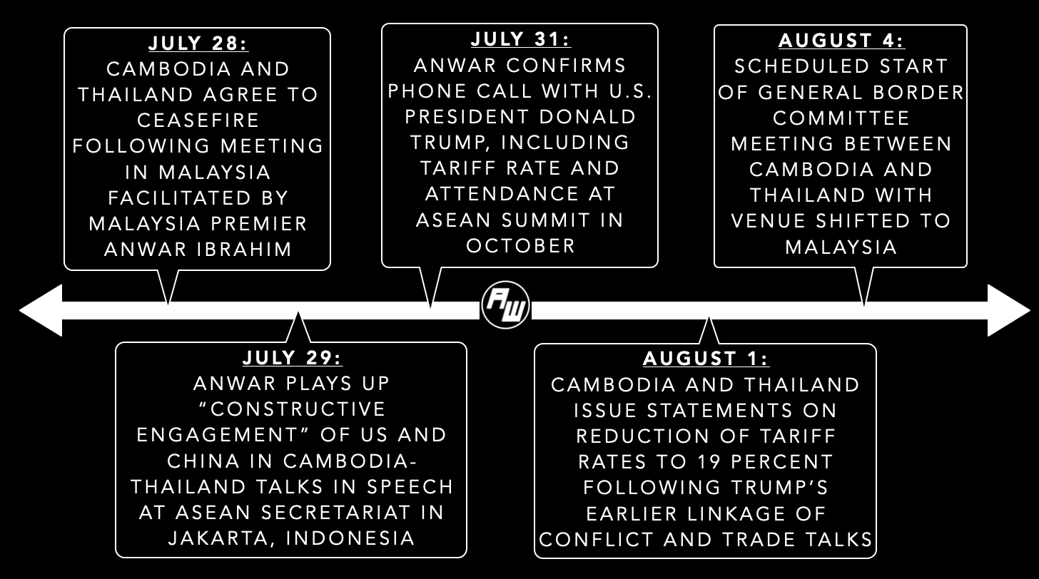 • Fragile ceasefire fears lingered as Cambodia and Thailand moved ahead with border consultations and agreed steps following talks in Malaysia1. Some Thai officials have had to cancel wider meetings as the country steps up border briefings and site visits with foreign interlocutors, which ASEAN Wonk witnessed first hand en route to a defense-related engagement in Bangkok on Sunday2. It is also hard to miss Cambodia state media stepping up its highlighting of the global nature of nationalist sentiment, including cited Khmer community protests across Indo-Pacific capitals like New Zealand and South Korea3. Both sides also juggled the dispute amid outside power interest, with initial references to a “U.S.-Malaysia-organized process” to conflict management raising some eyebrows given wider dynamics of U.S.-Malaysia ties and U.S.-China competition4.