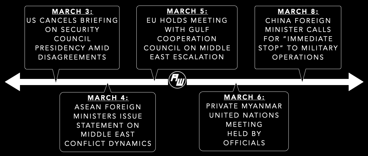 The fallout from Middle East conflict has rocked the Indo-Pacific including Southeast Asia over the past week1. The fallout has further complicated an already complex global flashpoint agenda ahead of engagements related to everything from U.S.-China summitry to Russia-Ukraine-related diplomacy. Disagreements among major powers have disrupted even usually routine datapoints like the release of the Security Council’s monthly agenda that ASEAN Wonk understands included a private meeting on Myanmar this past week featuring a briefing from the Philippines as current holder of the rotating special ASEAN envoy position — the first such designated session since the end of the military junta’s multi-phased election bid2. Developments like the sinking of an Iranian vessel off of Sri Lanka were also testament to cross-regional implications hitting Indo-Pacific areas like the Indian Ocean, with the subject being among those in focus at this year’s iteration of the annual Raisina Dialogue in New Delhi amid some delegate cancellations3.