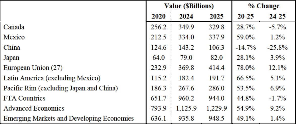 US Annual Trade Policy Report Depiction of U.S. Good Exports to Select Countries/Regions