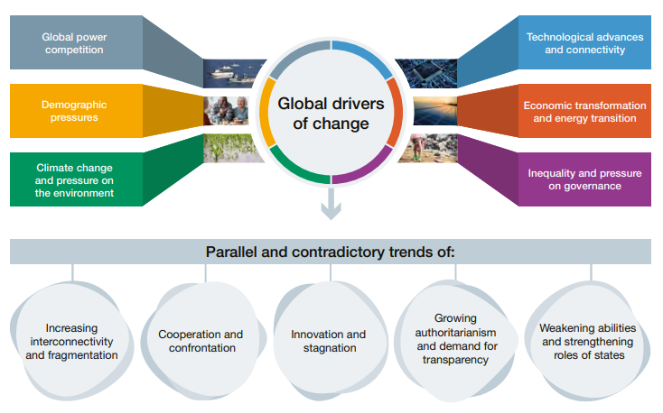 Graphic Illustrating Global Drivers of Change and Parallel Trends in Future World Forecasting